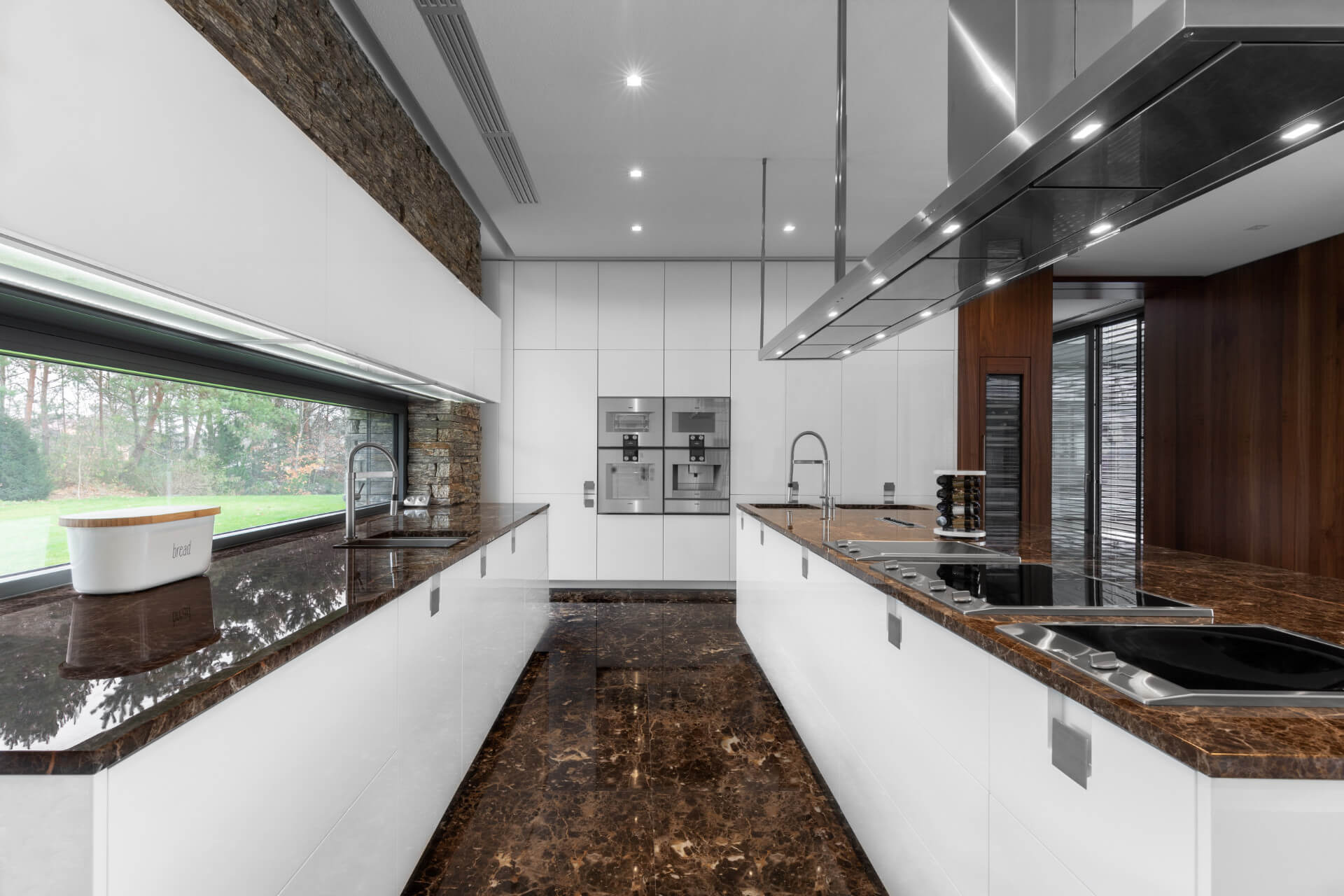 Kamienne blaty są niezwykle eleganckie, dlatego nadają kuchniom niepowtarzalnego wyglądu. Charakteryzują się wyjątkową trwałością, wygodą w utrzymaniu czystości i odpornością na działanie wielu szkodliwych czynników, tj. wilgoć, zarysowania czy wysoka temperatura. Ich powierzchnie, w zależności od preferencji, mogą być: polerowane, matowe bądź surowo wykończone.