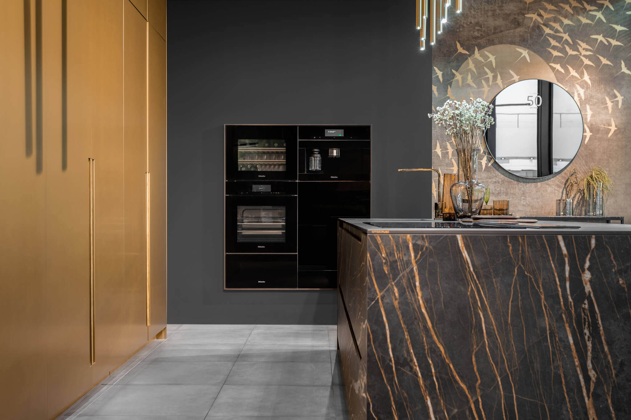 Coraz częściej nowojorskie kuchnie skłaniają się w stronę ciemniejszych barw. Popularne stają się zatem meble w odcieniach ciemnej szarości czy grafitu. Najważniejszym elementem stają się wówczas dodatki, takie jak armatura oraz oświetlenie.